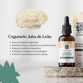 Juba de Leão: Extrato de Juba de Leão (Hericium Erinaceus), água e álcool de cereais.